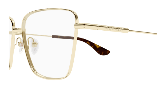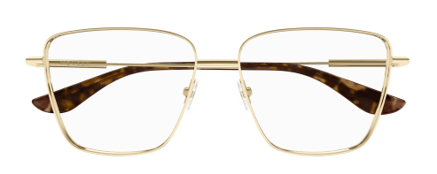 Vista per la prima volta nella collezione Autunno/Inverno 1995 “Highland Rape”, la T-Bar viene rivisitata e reintrodotta come nuova firma della Maison, segnando l’inizio di un capitolo ancora tutto da scrivere. La linea è interamente in metallo, caratterizzata da una T-Bar discreta ed elegante su ponte, musetti e dettagli delle aste. Ampia forma rettangolare femminile. Il nuovo logo McQueen è inciso al laser sulle aste.