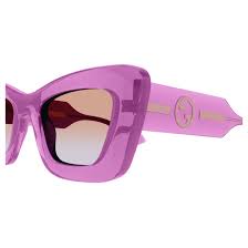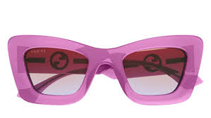 Estate, freschezza e colore sono le parole chiave di questa linea. Modello oversize contraddistinto dallo spessore e dalla plastica trasparente e brillante. Audace montatura oversize dalla forma cat-eye in acetato. Logo Gucci Blondie fluttuante sulla costruzione delle aste. Palette di colori trasparenti, commerciale ma di tendenza.