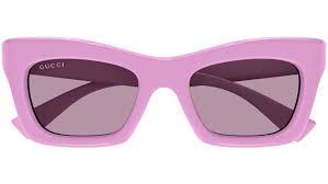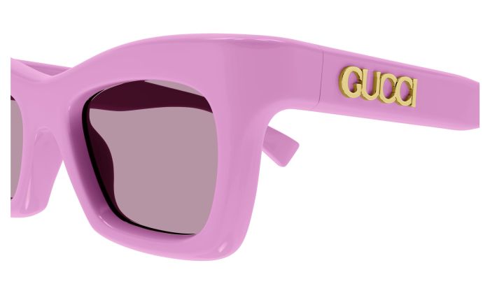 Occhiali da sole Gucci linea modello GG1773S cat eye in acetato riciclato codice colore 010 rosa Gucci tinta unita lucido con aste rosa e lenti color fuchsia tinta unita.