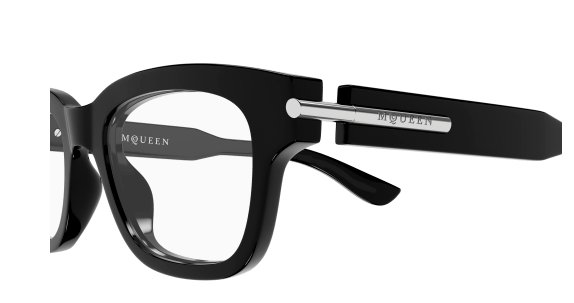 Vista per la prima volta nella collezione Autunno/Inverno 1995 “Highland Rape”, la T-Bar viene rivisitata e reintrodotta come nuova firma della Maison, segnando l’inizio di un capitolo ancora tutto da scrivere. La nuova, iconica T-Bar integrata nella cerniera diventa il punto di congiunzione tra frontale e aste. L’estremità arrotondata della T-Bar, visibile sul frontale, conferisce un tocco ricercato a questa montatura rettangolare unisex, classica e facile da indossare. Il nuovo logo McQueen è inciso al laser sulla T-Bar in metallo.
