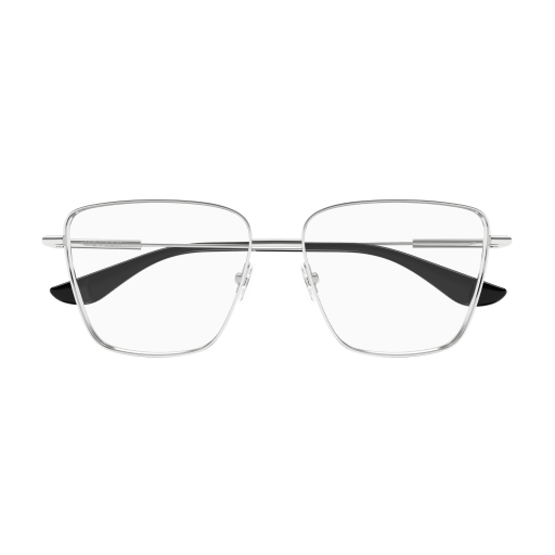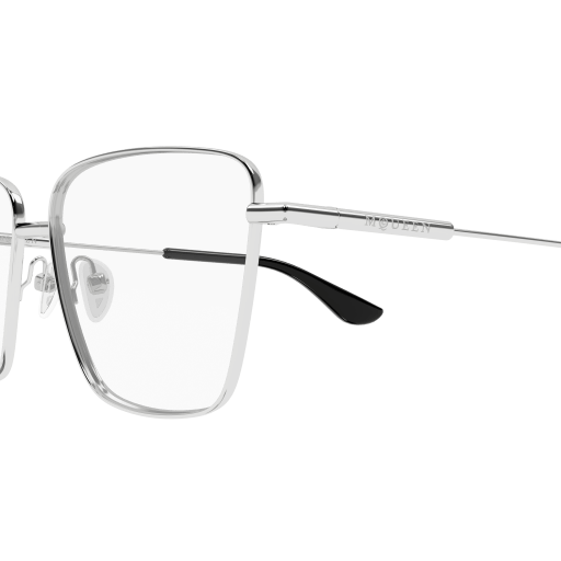 Vista per la prima volta nella collezione Autunno/Inverno 1995 “Highland Rape”, la T-Bar viene rivisitata e reintrodotta come nuova firma della Maison, segnando l’inizio di un capitolo ancora tutto da scrivere. La linea è interamente in metallo, caratterizzata da una T-Bar discreta ed elegante su ponte, musetti e dettagli delle aste. Ampia forma rettangolare femminile. Il nuovo logo McQueen è inciso al laser sulle aste.
