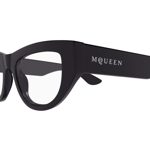 La linea McQueen Logo si distingue per il design carismatico ma facile da indossare, con un branding ben visibile. Il consistente frontale in acetato è abbinato ad aste iniettate. La montatura ha una silhouette cat-eye femminile. Il nuovo logo McQueen è applicato sulle aste tramite sticker metallici.