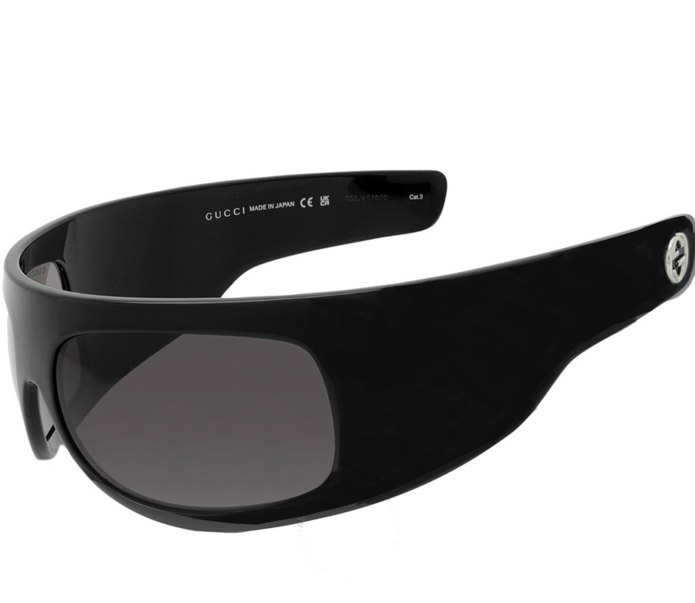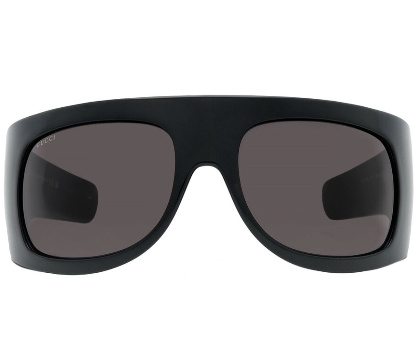 Montatura piegata in acetato, ispirata all’idea del cerchietto. Aste non pieghevoli. Logo GG in metallo argentato sulle aste.